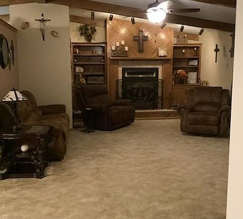 COUNTRY HOME ON 20 ACRES! ASSUMABLE MORTGAGE AT 2.5% This elegant home offers beautiful oak beams on vaulted ceilings in the living room, dining room, and kitchen—an open design with a neutral color palette that gives the home a decidedly airy feel. The living room features a Wood-burning Fireplace with more Oak Wood and a large Bow Window. Dining Room has a Bay Window with a view of the gypsum hills, wildlife, and trees on the Medicine River. The kitchen has tons of Custom Oak Cabinetry with/ plenty of prep space, a Pantry, and a Breakfast area with/ Sliding door leading to the backyard and deck. Master Bedroom features an en suite with a jetted tub and separate shower, Walk-in Closet. On the main floor, there are two more Bedrooms and a Full Hall Bath, and all have ceiling fans and nice closets. The laundry/Mud Room also has a half bath. Full Finished Basement with Large Family Room, complete with Pool Table, Ping Pong table, Darts, and tiled area for games, dancing, etc. There are two more Bedrooms and a Full Bath, a Mechanical Room, and a storage room with an outside exit. Attached garage for 2 cars. Huge wood deck out back for entertaining. Brick Garden Shed, and 2- 30’x50’ cattle/equipment sheds and cattle corrals, continuous panel fencing (80%), and barbed wire (20%) around the entire 20 acres. This home is just outside the City Limits of Kiowa, KS. Fiber optic internet.