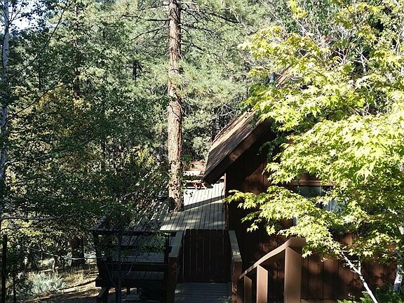 This unique, secluded gem is a must see! Surrounded by a variety of tall pines, you'll find this wonderful cabin nestled among beautiful shrubs and trees, yet close to the golf course, equestrian, village center and all amenities. Boasting a massive rock fireplace, high ceilings and a huge loft, perfect for sleeping a multitude of guests, you'll find that this quaint little cabin is just around the corner. There are 2 bedrooms and a full bath on the main floor as well as an open living room with floor to ceiling windows with serene views. The spacious deck is perfect for entertaining and enjoying the fresh mountain air. This home has an irrigation system, forced air heating and a large basement with a multitude of uses. Come take a look! You'll like what you see!