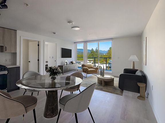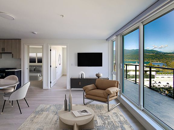 Mountain and water views, same-floor shared terrace access, and calm northeast exposure: this brand-new corner home at Anchor by Bold Properties brings together everything you want in one clear, modern design. Inside, 772 sq ft unfold with two bedrooms, two baths, and a modern kitchen with full-sized appliances and clean finishes. Unique to the 4th floor, residents enjoy convenient access to the shared terrace on the same level, plus another rooftop terrace above with panoramic views. A lounge, gym, and courtyard round out the amenities, with parking and storage adding daily ease. GST included. Virtually staged to inspire, this home is move-in ready. Book your private tour today.