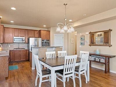 Clean, roomy, well-maintained, beautiful stucco home with oak hardwood floors throughout both the main level and the upper bedrooms level. Highly-rated District 38 school system. Five bedrooms plus an office. Four bathrooms. Three-car attached garage. Mountain views. Two gas fireplaces. Air conditioning. Forced air natural gas heating. Finished carpeted basement with full-bathroom, bedroom, wet-bar, refrigerator, microwave and fireplace. Great family neighborhood. Automatic sprinklers in front and back with drip lines to flowers, plants and trees. Beautiful privacy-fenced backyard. Play-park two blocks away. Open space on west side of house with seasonal pond (no neighbor to the west). Houses behind the house are set-back nicely from this house. Biking and hiking path nearby, including the Santa Fe Trail. Close to downtown Monument. Close to hospitals, medical services, and shopping. Easy access to Air Force Academy, Denver, and Colorado Springs. Available now. Tenant will be responsible for lawn maintenance, snow removal, and utilities (water, sewage, gas, electricity, trash, internet/cable, and phone). A small or medium sized dog may be allowed with extra $300 nonrefundable pet fee. No cats allowed. Length of lease negotiable. Tenant will be responsible for lawn maintenance, snow removal, and utilities (water, sewage, gas, electricity, trash, internet/cable, and phone). Small to medium-sized dog allowed upon approval by landlord. No cats allowed. Length of lease negotiable.
