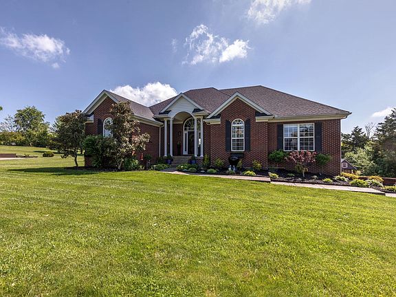Beautiful and serene well-maintained brick ranch home on a one acre lot at the end of a quiet cul de sac in desirable Shadow Creek Estates! Three bedroom 2-1/2 bath open floor plan with split bedroom design. Enter the home from the covered front porch into an inviting foyer that opens up to the spacious great room featuring vaulted ceilings and a gas fireplace. The eat-in kitchen with island opens to the great room, has beautiful custom cabinetry, tile backsplash and quartz countertops. There is also another room off of the foyer that currently serves as a formal dining room but could easily be a lovely office, library or extra sitting room. The primary bedroom suite is very private and features a trey ceiling and his and her closets.