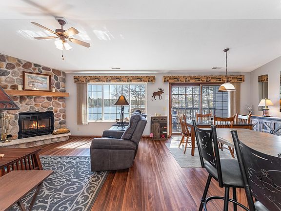This Eagle River Chain condo is in search of new owners to love and enjoy as much as this one has. Unit 225 at Wild Eagle Lodge is an upper level 2BR/2BA 1,120 sq. ft. condo that overlooks Duck Lake, down the pathway to the sandy beach so it remains private. Although this unit has not been rented for the past 6 years, it could be added to Wild Eagle rental pool to make it an investment property. Pier slips are available to rent for the season. The association sits on 19+ acres and shares a total of 1,800 ft of lake frontage on Duck and Lynx Lakes. The grounds are beautifully maintained with black top walking paths throughout, numerous lakeside firepits & BBQ areas, indoor pool, on site restaurant, snowmobile shop, tennis court, beach, playground, sand volleyball court, and a trailer parking lot. It offers so much, this condo should definitely be added to your viewing list!