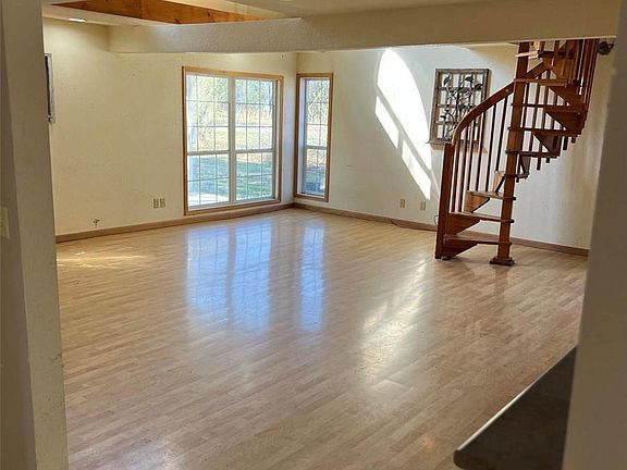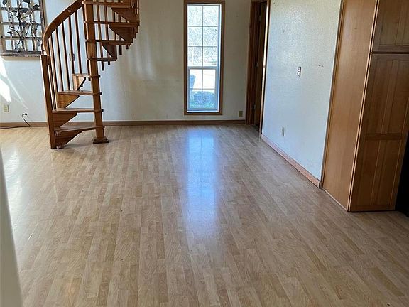 Come check out this open floor plan, spacious home in the country. This is a 3 bedroom home sitting on 1.5 acres just outside of town that has a wooden fence around the perimeter of the property. Once you walk in the door you will notice the wooden spiral staircase leading to the upstairs area. The main floor offers the living room, spacious kitchen, dining room, master bedroom, bathroom, laundry room with a doggy door for easy convenience of letting the pups out and a large sunroom. Upstairs you will find the balcony area and 2 large bedrooms with skylights in them. This home is on a nice flat lot with plenty of room for your pets to roam around freely. Come check this unique property out!