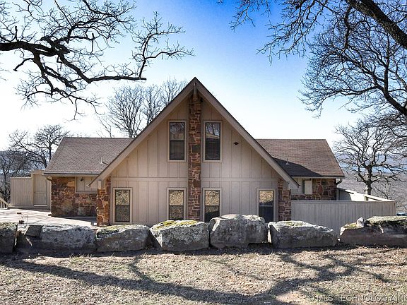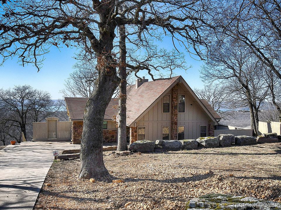 YEAR AROUND LAKEVIEW! 3BD/3BA Fully Furnished Move-In Ready Rock home in gated community on a large corner lot. Just minutes to Tenkiller Lake & Snake Creek Marina. Large Deck for entertaining and views from every room in the house. Cabinets Galore in the kitchen with Corian countertops. 2-master suites downstairs. Loft entrance is accessed thru a staircase in the garage. Loft has full bath upstairs & three beds. Beautiful stove/fireplace can be upgraded to propane; its now wood-burning. Original wood floors. Beautiful windows overlooking the lake! 2-car attached heated garage. Security system with cameras. A must see!
