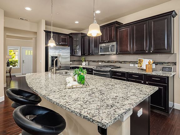 This spacious home offers 4 bedrooms, 3.5 baths, a Chef's kitchen with SS appliances, granite counters, gas range, great room, private patio, and exterior fireplace.
