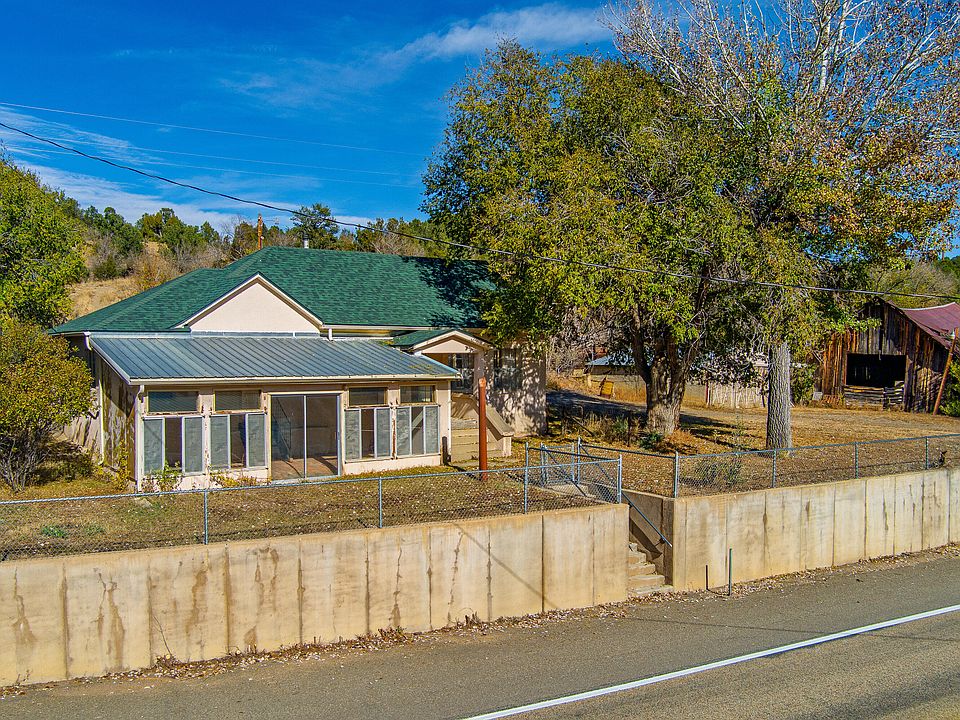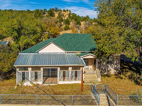 Huge price reduction. Don't miss your chance to own this property that has City Water. Along the Scenic Highway of Legends - across from Primero School in Weston with 38.7 acres in back that has a nice building site. Yes - the home is livable, just needs some updating. The old Barn is standing but in dire need of repair or torn down. Several other outbuilding. New Roof on the home in February 2025. Hardwood floors in most areas, 3 bedrooms, one and half bath,, linoleum in kitchen and other small areas.2 bedrooms on the main floor and one up loft. Large sunroom with brick flooring. There is a basement for some storage but houses the furnace and water heater too. Most of the land is north of the home, has good access, utilities run through the back. Gentle terrain, views of the Sangre De Cristo snow caps, totally fenced by neighbors, easy hikes, meadow, pinon and cedar trees, rock outcroppings and native grasses. Quiet!