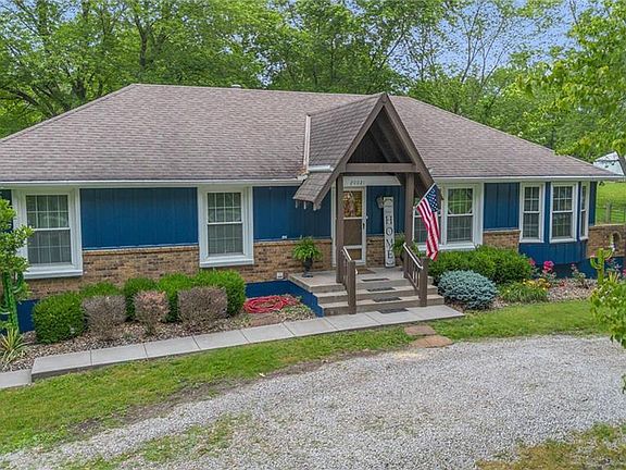 Serenity at its best... Lovely raised ranch home on 4.89 acres with gorgeous views, mature trees, 30x30 outbuilding, 10x16 lean to and a small pond. This beautiful 4-bedroom, 2.5-bathroom home has been completely redone, it is practically a new build.  New kitchen (all new appliances stay), new bathrooms, new HVAC, new flooring, and so much more.  Home is in Raymore Estates with NO HOA and County maintained roads. Enjoy riding horses, ATV's or just a pleasant walk. Peace and tranquility at its finest. It is in an excellent location to access schools, cities, highways, gas stations, entertainment and restaurants. This home is a must see!  Call today for a private showing.
