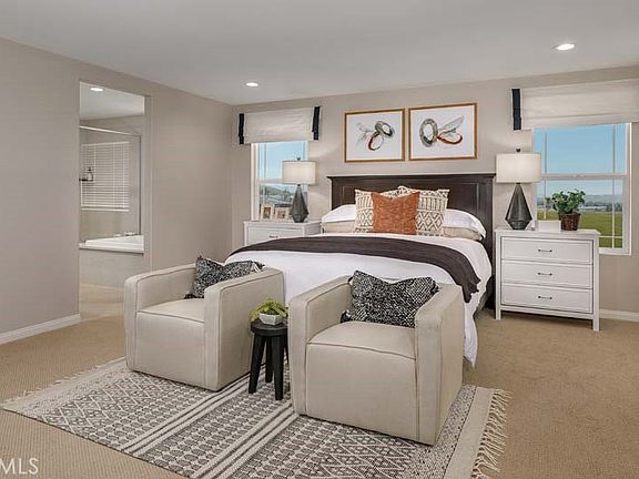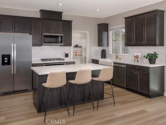 A beautiful community in SPRING MOUNTAIN RANCH by KB Home nestled by the mountains. This is a great opportunity to own a fully upgraded model home in our Avalon community located in Riverside. This is a two story Prairie style home. This home features a Whirlpool gas cook-top, whirlpool side by side refrigerator, a micro/hood combo along with a single wall oven w/ touchscreen to make for an upscale kitchen design. You will also get a top-load washer and gas dryer. You will enjoy an open concept floor plan for that ultra spacious look and feel. Downstairs you will find a bedroom with an en suite bathroom, upstairs you have 4 bedrooms plus a loft for your enjoyment. The kitchen includes beautiful Quartz counters with a full tile back splash, you will see Luxury vinyl planking floors throughout, a large walk-in closet in your primary bedroom with an Acrylic separate tub and shower in your bathroom. A corner home!! The front yard is fully landscaped in drought tolerant material and includes an automatic drip watering system. This home is Energy Star rated and Solar purchase included for maximum energy savings! Walking distance to Spring Mountain Ranch Park, which features a basketball court, sand volleyball court, and BBQ and picnic areas. Near Loma Linda University Medical Center and schools, including University of California, Riverside. Mello Roos built into estimated property taxes.