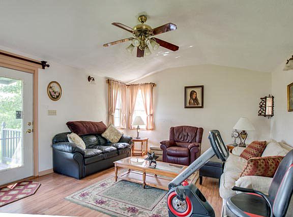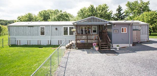 Unique little farmette with lots of possibilities! 1998 Single wide mobile home offers 3 bedrooms and 2 baths and has an addition added on that features an open living room and office. There is also a block garage on the property that has been partially finished on the inside and has potential to be fully livable w/ a kitchen and bathroom, or can be converted back to a garage. There is a barn on the property for critters, numerous storage sheds, a carport, garden space and open acreage. A one of a kind property!