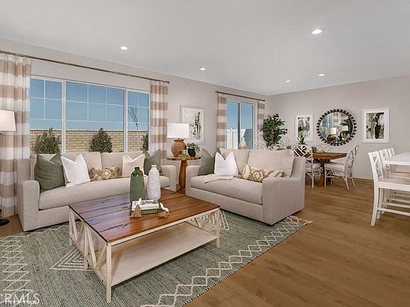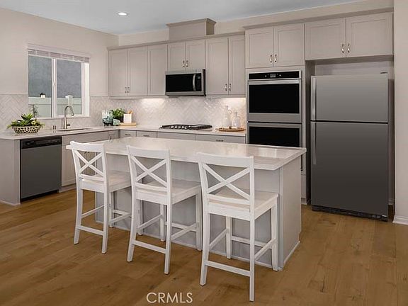 A beautiful community in SPRING MOUNTAIN RANCH by KB Home nestled by the mountains. This is a great opportunity to own a fully upgraded model home in our Avalon community located in Riverside. This is a two story Farmhouse style home. This home features a Whirlpool gas cook-top, whirlpool refrigerator, a micro/hood combo along with a double wall oven to make for a upscale kitchen design. You will also get a top-load washer and gas dryer. You will enjoy an open concept floor plan for that ultra spacious look and feel. You will find beautiful Quartz kitchen counters, Luxury vinyl planking floors throughout, a spacious loft upstairs for your enjoyment, a large walk-in closet in your primary bedroom with a separate tub and shower in your bathroom. The front yard is fully landscaped in drought tolerant material and includes an automatic drip watering system. This home is Energy Star rated and Solar purchase included for maximum energy savings! Walking distance to Spring Mountain Ranch Park, which features a basketball court, sand volleyball court, and BBQ and picnic areas. Near Loma Linda University Medical Center and schools, including University of California, Riverside. Mello Roos built into estimated property taxes.