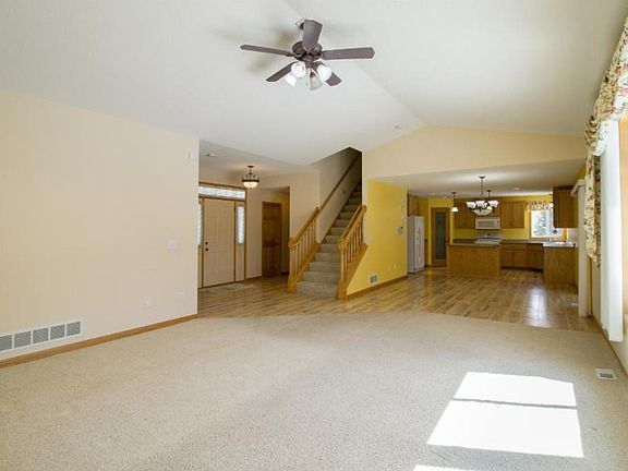 Spacious modified two story with 3 upper level bedrooms and an additional detached garage!. Open concept main level with vaulted ceilings, gas fireplace, new carpet installed, 3 season porch, laundry, and office. Large kitchen with hardwood floors, center island, and pantry. Master suite has a walk-in closet and private bath with separate whirlpool & shower. Unfinished basement with a large finished bath, and egress window for a potential future bedroom.