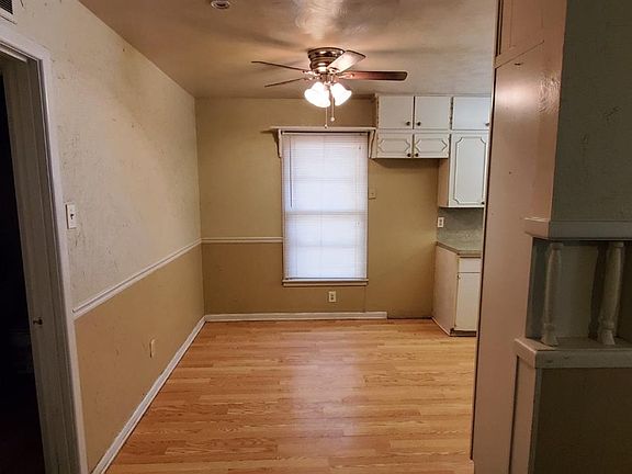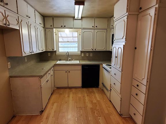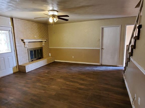 Wonderful 4 bedroom 2 bath home under$100,000. Good sized living area with a firplace, eat in kitchen, 2 bedrooms downstairs. Large covered back patio, storm cellar & storage building in back yard.