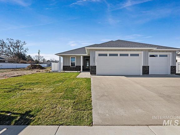 Welcome home to the enchanting 1522 SQ FT. “Cascade”, nestled in the quiet and charming Fruitland, Idaho. This new build residence captivates the charm of rural living, featuring 3 bedrooms, 2 bathrooms, and a 3-car garage. This open-concept layout seamlessly connects living areas, magnifying the sense of space and luxury! Solid surface granite countertops grace the kitchen, complete with high-end stainless steel appliances, a sizable butler’s pantry, and breakfast bar, perfect for casual dining. 9ft ceilings throughout add a touch of sophistication, while the great room boasts beautifully designed 10 ft coffered ceilings. With a double vanity, a luxurious fully tiled walk-in shower, and a spacious walk-in closet, the Primary suite offers a private retreat. Enjoy the outdoors straight from your backyard, courtesy of your covered patio! Be the first to add your special touch to this meticulously designed, new build home! Sellers are offering a $5,000 concession with full price offer for buyer's needs.