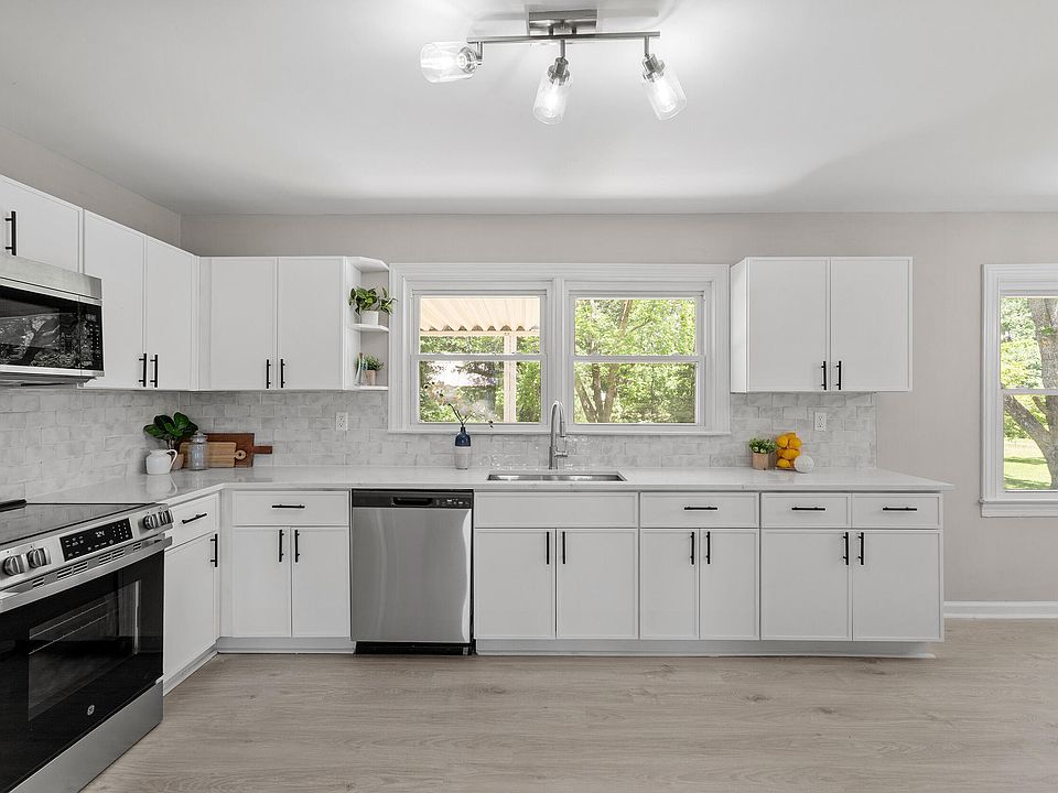Huge walk in showerStainless appliancesAmazing primary suiteDouble vanityNew designer carpet