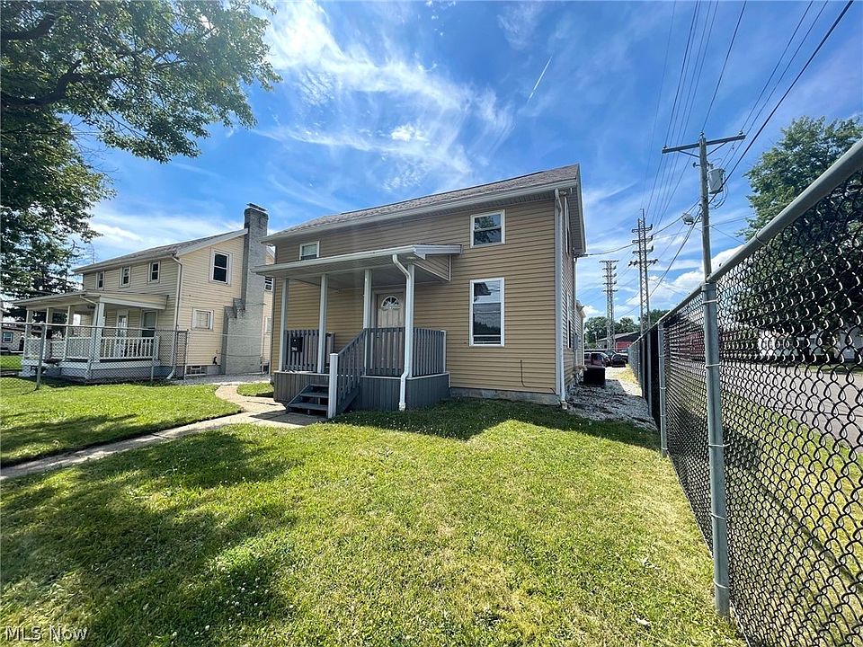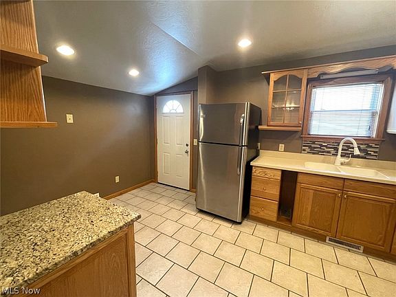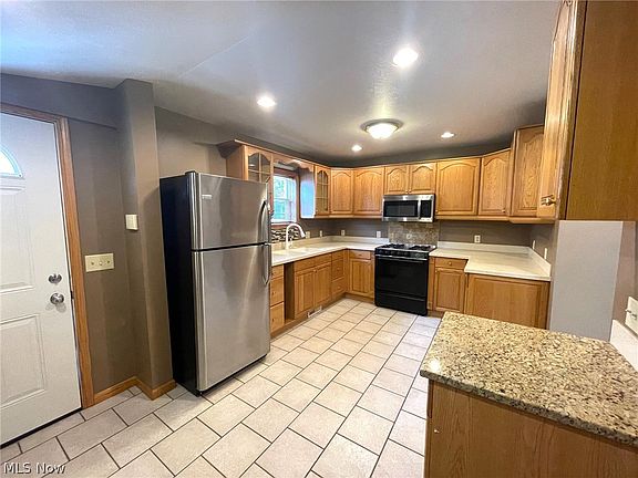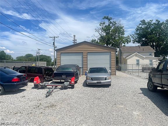 This well maintained home is on a corner lot and has had lots of updates. The home features a first floor bedroom and a combined bathroom and laundry room. Living room, kitchen and bathroom/laundry room all have tile flooring. The updated kitchen has lots of newer oak cabinets and Corian countertops. The refrigerator, range and microwave stay. The second floor has a bedroom and full bathroom. There is a half bathroom in the lower level. Newer high energy efficient furnace, central air and hot water heater. The detached, 4-car garage with high ceiling is 750 sf and has two 10 foot 10 foot overhead doors. Locking gate that is 24 fee wide. Lots of parking. The entire property is fenced in. Newer windows and roof with dimensional shingles. Home is close to interstate access.