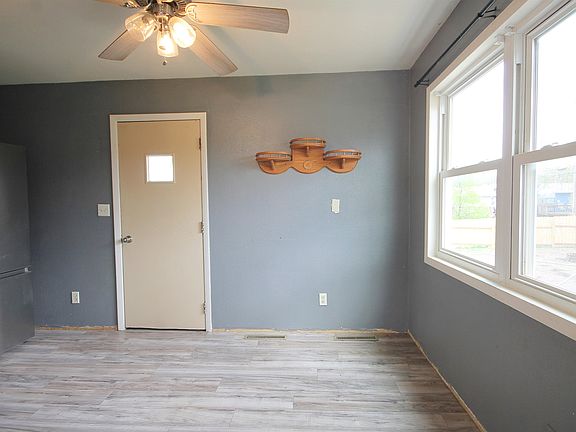 Listed by Cory Williams, The Real Estate Center, 605-490-3045. 4 bedroom, 1 bath home just 1 block from Sturgis Elementary School. On the main floor there are 2 bedrooms, 1 bath, kitchen/dining area that walks out to the back yard and a living room with great natural light. Two additional bedrooms downstairs and a large storage/laundry room. Updated laminate wood flooring throughout most of the upstairs, furnace and water heater were updated in 2019 and roof and gutters in 2020. Walk out basement and fully fenced back yard with firepit.