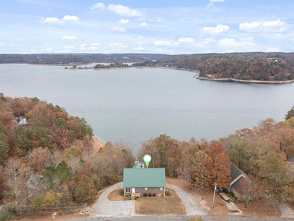Smith Lake (Ryan Creek) Amazing views from this 4BR cottage in Bluewater Estates. A huge open great room is ideal for entertaining all of your lake guests. Located in a popular section of the lake in between the Smith Lake Park and Trident Marina. Only minutes from I-65 at Exit 305. Paved roads to the property. Covered boathouse sits in year round water. Priced aggressively for quick sale.