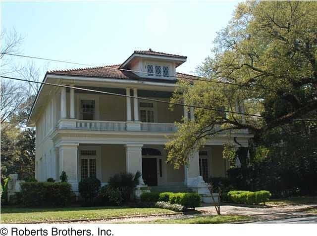 HH- Starting at the front door, you enter through the double doors with leaded beveled glass and a fan medallion above the door. The 46x9 front porch is old tile and wraps around the east side. From the foyer to the left are two double parlors. To the right is the formal dining room with a huge chandelier and the kitchen which could be opened up and made into the kitchen of your dreams! The 18x26 master bedroom is on the east corner upstairs and opens up to the balcony. There is an entire wall of closets, a fireplace and bookshelves on one wall. The floors are beautiful in this house, the roof old red ceramic Spanish Tile. The grand house sits on a large lot with a double garage in the back. The room on the back of the house was used as a den but has a huge bathroom attached and could be made into a suite with its own entrance. Please come by and take a look, its just needs a loving family to restore it to the stately southern home its meant to be!