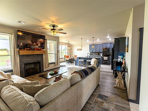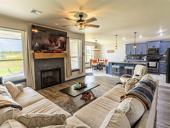 Come see the stars and relax on your own little homestead! Located on an acre with a spacious open concept living area, split plan with 3 bed and 2 bath and NO carpet! The kitchen is roomy enough to dance in with granite countertops, large corner pantry, and plenty of storage. The primary suite easily accommodates a king-sized bed and welcomes the morning sun through the east facing windows. The ensuite has a walk-in closet, walk-in shower, and 2 separate sink areas plus a private water closet. The secondary rooms each have their own walk-in closets. Enjoy evenings year-round on the extended back patio located on the east side of the home. The backyard is partially fenced with a 5-ft, black, vinyl chain link fence to help contain kids and pets. This home is all electric, has a 50 gal water heater, private well, aerobic septic system, and Pioneer Fiber Internet. The fireplace runs off a propane tank that stays with the home. The shop-approved Greys Harbor Community is just north of Winter Creek Golf & Country Club and a short distance from HWY 9 and I-44. Easily accessible to main routes to OKC, Norman, and Chickasha. Situated in the Middleberg School District for K-8th grades and Blanchard School District for HS. ~~Ask your lender about USDA RD loans with a 0% downpayment!~~