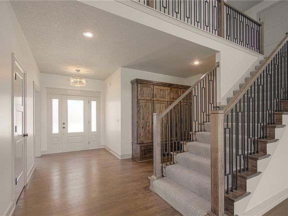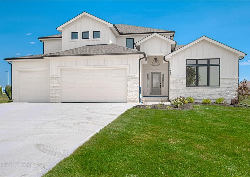 This beautiful new Mason floor plan is a 1.5 story home built by NTJ Builders that offers four bedrooms and 3.5 bathrooms. The community includes a pool and close to Kearney's scenic four-mile walking trail. The home features stunning oak wood floors, stainless steel appliances, Knotty Alder cabinets and quartz counters. The Mason plan is ideal for families, featuring a flex room, office or dining area that leads into a butler's pantry to the kitchen. Entertaining isn't a problem in this wonderful home. Wait until you see the open flow throughout the main level and the spacious loft/family room. The finishes throughout this home will not disappoint.