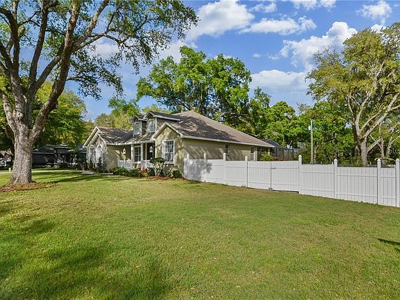 Don't miss this one! This 2 story split floor plan (former model) home has gorgeous views from the moment you walk through the front door as your eye catches the private in-ground salt water pool with a fully screened lanai. The home sits on an almost half acre corner lot which is fenced with just over 2,200 square feet and boasts 3 bedrooms, 2 full baths, formal dining room, eat in kitchen, office/den downstairs, plus a bonus room upstairs. The master bedroom has direct access to the pool/lanai area and has its own en-suite. The property boasts granite countertops in the kitchen, stainless steel appliances, 1st level master bedroom, side entry garage to name a few of the wonderful features. Best of all, this home has no HOA or CDD fees. Call and make an appointment today.