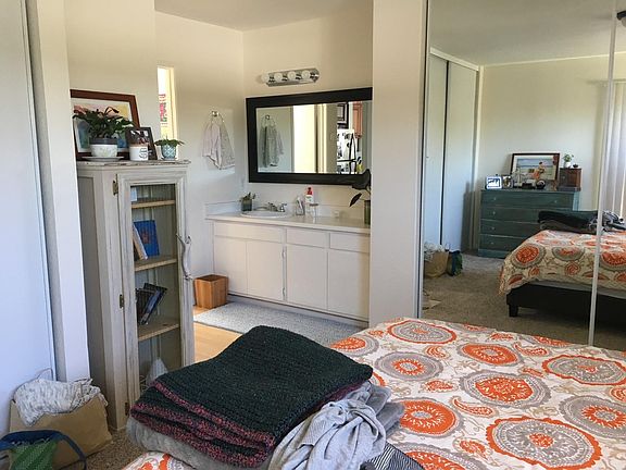 Condo in quiet complex -- close to Ralphs (walking distance) and 1.2 miles from Baywood (the bay). Kitchen has granite countertops, new blinds, nice carpet, small patio, large two-car garage with workbench, washer and dryer in unit, and a newly tiled balcony off the master bedroom. Great lighting in the unit, and great neighbors. A tour can be scheduled for the last week of March. Owner pays trash and landscaping costs; lease is for one year.