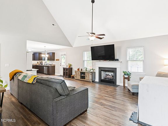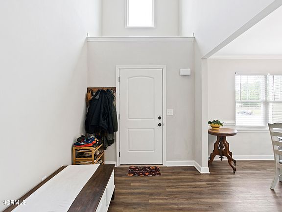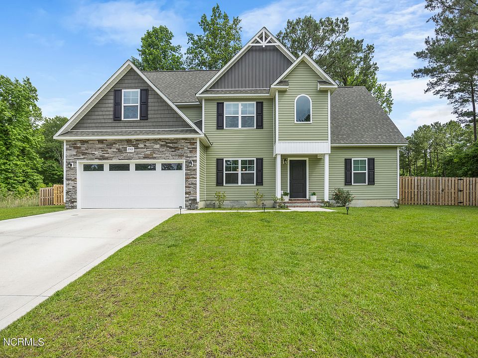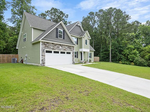 Welcome to 2003 Marston Drive, the perfect combination of home and setting. The perimeter of this property is surrounded by a natural buffer of trees, hard to find these days where most communities have clear cut lots. To the right of the home, outside the fence, is a 404 Wetlands area ensuring continued privacy. This home is located in Fieldstone at Haws Creek, a well-maintained community with great proximity to both MCAS New River and Camp Lejeune. With almost a full acre of land and surrounded by trees, this home is a sanctuary to the hustle and bustle of daily life. With a fully fenced back yard, your family can enjoy outdoor games, a dip in the pool, BBQ's or the sounds of nature while relaxing. Inside you will find a large primary bedroom, bath ensuite, on the main level. The first level also features a formal dining room, kitchen with pantry, large living room with gas log fireplace, powder room and laundry. The main living space of the home is premium vinyl flooring with carpet in the bedrooms only. Upstairs are two additional bedrooms, bonus room and shared bath. There is an abundance of both cabinetry and closets, no lack of storage here. Don't miss the opportunity to make this great home your own.
