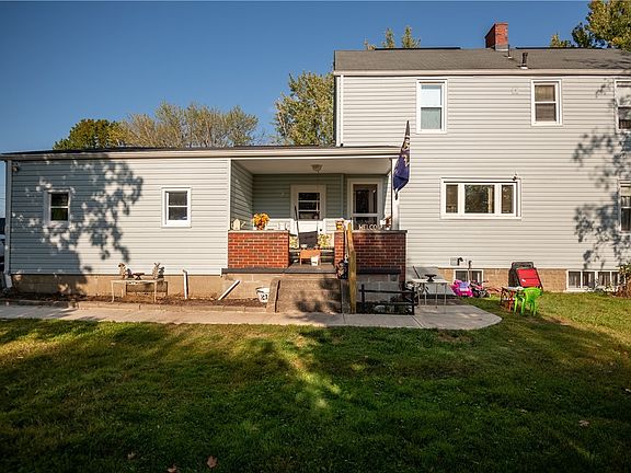 This rare, five bedrooms, three bath home with many new updates offers so much space inside and out! The spacious living room has a lovely stone wood burning fireplace and original hardwood floors. Off the living room is a quaint office/den space. A formal dining room with new flooring opens to the kitchen with new butcher block countertops new stainless-steel appliances that are included but not warranted, new flooring and a newly added half bath complete the first floor. The attached two car garage has a workshop and additional storage above. Upstairs are four bedrooms and a full bathroom with new ceramic flooring and tile surround. The walk up attic provides additional storage. In the waterproofed basement is a fifth bedroom with an added egress window, a family room with newly poured concrete flooring, a bathroom and a shower, washer and dryer, and even more storage with walk out access to the large back yard. New concrete sidewalks and nice front and rear porches, shed included.