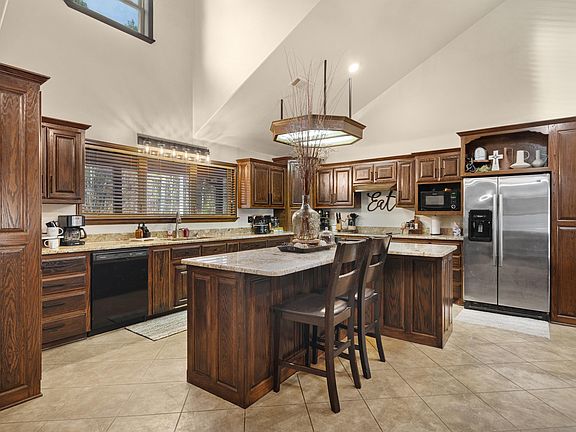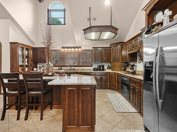 Stylish, classy, beautiful countryside living at it's best! This gorgeous home with 18' ceilings, designed concrete flooring, large rock fireplace, open floor plan on the inside, then opens up to a dreamy outdoor kitchen area with another fireplace and a tv for entertaining guest who can also enjoy the welcoming in-ground heated, saltwater pool. The heated/cooled detached garage and is the perfect work space, where the owner has rebuilt many beautiful classic cars or for any other workshop area you may want. All of this sits on beautiful 2 acres where you can enjoy other outdoor activities or a place to park your boat, rv or any other toys. The back yard is fenced in to keep your fur babies safe, yet they have plenty of room to play.