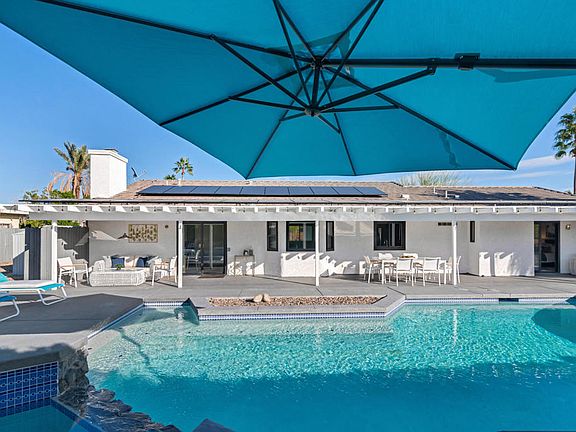Live the resort lifestyle every day at 2003 N Sandra Rd. Framed by west-facing mountain views and golden sunsets, this 3-bedroom, 2-bath residence spans approximately 1,663 sq ft on an expansive 11,761 sq ft lot, blending refined comfort with effortless indoor-outdoor flow. A formal living room welcomes elevated gatherings, while the large open floor plan invites seamless entertaining that moves naturally to the pool and hot tub--your private oasis for sun-drenched afternoons and starlit evenings.Thoughtfully updated, the kitchen brings modern style to the home's architecture and anchors the social heart of the residence. Energy intelligence elevates daily living: 29 solar panels (lease began about 2 years ago; currently $407.91/month--buyer to assume and verify) are paired with two large solar batteries for added resilience, plus EV charging for a future-forward lifestyle. The garage features a brand new epoxy floor. RV parking adds versatility for adventure gear or guests. The west-facing orientation captures dramatic mountain silhouettes and evening glow, underscoring the home's true resort-living appeal.Set in a desert destination known for outdoor recreation and vibrant culture, you're near scenic hiking and cycling trails, renowned golf, wellness spas, open-air shopping districts, chef-driven dining, and arts and entertainment venues, with convenient access to daily essentials and regional transit.