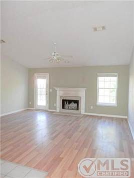 Open floor plan featuring living room with fireplace, eat-in kitchen with snack bar, and zoned bedrooms. Trey ceiling, bay window, bath w/ double vanities, and walk-in closet in master bedroom.
