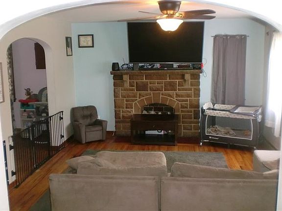 Check out this great starter home oozing with character and charm: Original Slate Entryway ~~ Original Hardwood Flooring in the Living Room and Dining Room ~~ Original Hardwood Flooring in all three Bedrooms and 2nd Floor Hallway ~~ Large Rooms on First and Second Floors ~~ Quaint rounded front door interior doorways ~~ Stone Fireplace in Living Room ~~ Updated Kitchen and Bath ~~ Newer appliances ~~ Super large two car Detached Garage ~~ New Central Air ~~ New Roof!! A must see ... don't let this one get away!