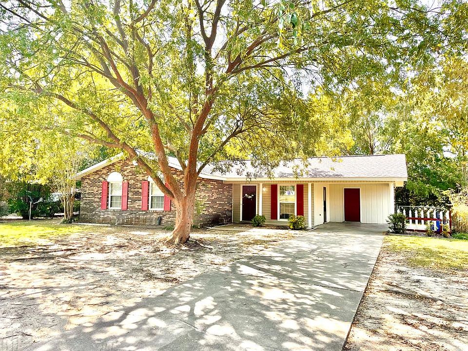 New Roof on this cozy starter Home at 2003 Rock Spring Rd Dothan. Picturesque Mature trees shade the fenced lot & covered rear porch. Welcome to this Lovely Full Brick home w vinyl siding & pops of red on the doors & shutters. Walk inside to a rustic brick, non working fireplace painted white & next to it a double glass door for natural light to enhance the fresh paint throughout. The kitchen boasts of a pantry, dishwasher & stove, plenty of storage & Dining area. 3 bedrooms w 2 full baths w shower / tub combo allows for a precious growing family or retired couple to Love this home! New Roof, Laminate flooring throughout, New paint interior & exterior, Double pane storm windows, Storm door, Laundry Room w plenty of storage space for outside tools & a convenient 1 car attached carport which opens directly in to the kitchen. The large storage shed remains. New water heater & Terminix Termite bond in place. 2003 Rock Spring Rd is a wonderful, well maintained, Fresh clean Home close to Headland and Dothan.
