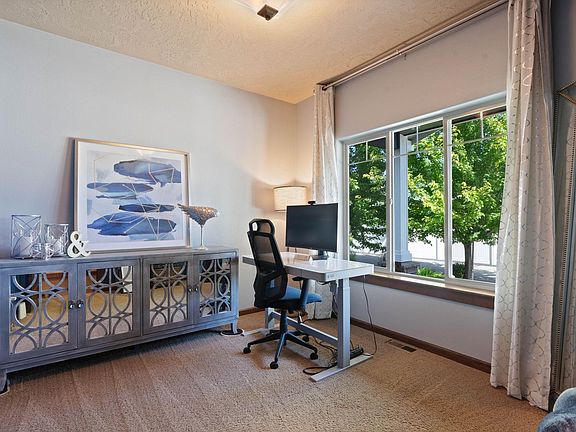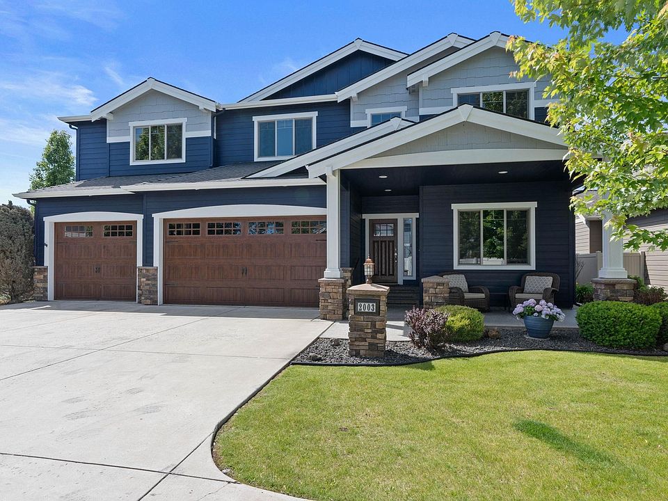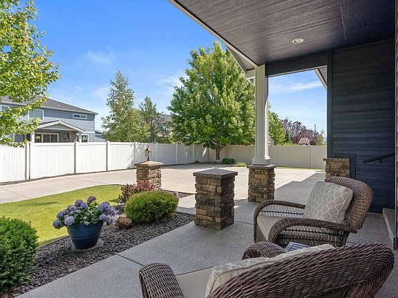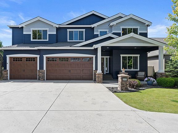 Experience unparalleled beauty in this exquisite Camden-built home nestled in the heart of Morningside Heights! Boasting a spacious 5BR/4BA floor plan spanning 4188 square feet, this home is designed for both luxury and functionality. The gourmet kitchen features granite counters, stainless steel appliances, modern cabinets, and a convenient pantry. Entertain guests in style with a graceful living room and a formal dining area, complemented by a serene front office for remote work. Upstairs, discover three bedrooms with walk-in closets, a convenient laundry room, and a stunning primary suite offering picturesque views of Mica Peak. A bonus loft provides additional space for casual gatherings. The lower level hosts a spacious family room, mini kitchen, and bath, perfect for accommodating guests or extended family. Outside, the beautifully landscaped backyard with concrete curbing and a large patio beckons for outdoor dining and summer gatherings. Located on a private lane for added peace of mind and safety.