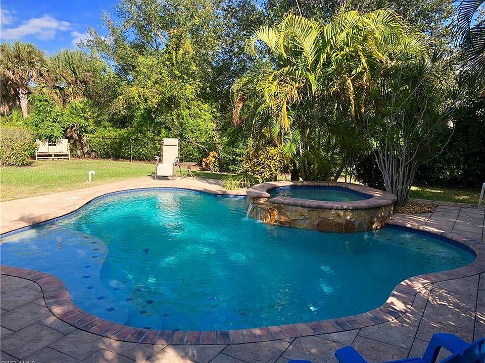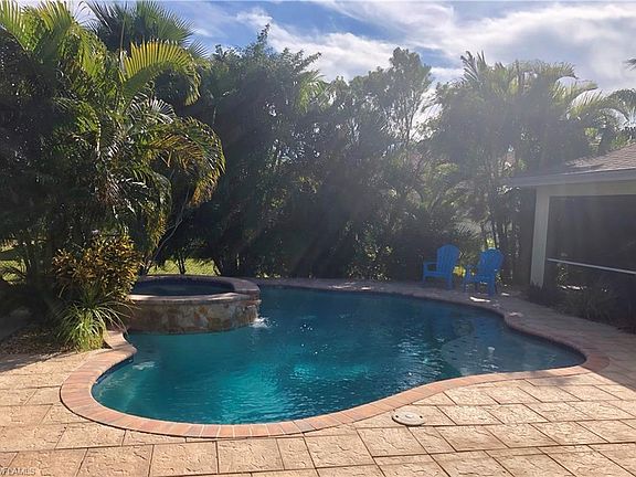 FANTASTIC LOCATION AND ALL ASSESSMENTS PAID! BEAUTIFUL HEATED POOL & SPA with Pavered Lanai and Fenced Yard. This Tropical Oasis backs to a pond surrounded by trees. Very private with no neighbors directly behind you. Spacious OPEN FLOOR PLAN, kitchen with breakfast bar, Vaulted ceilings, Split bedrooms, and Neutral Colors throughout. Conveniently located in the heart of Cape Coral near shopping, great schools, healthcare, restaurants, with easy access to SWFL International Airport. A short drive to Fort Myers Beach as well as Sanibel.