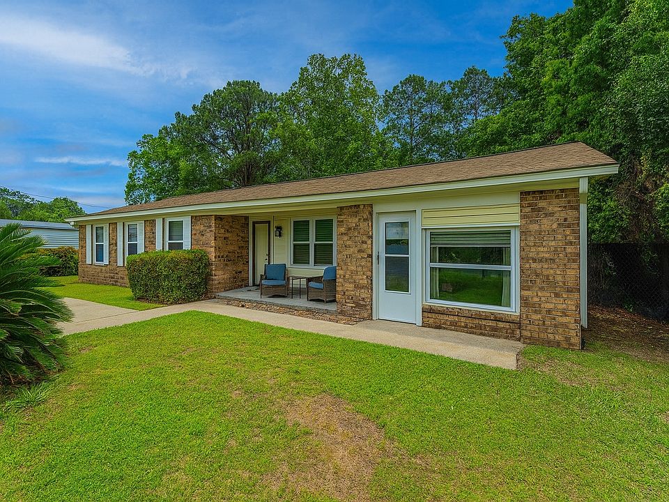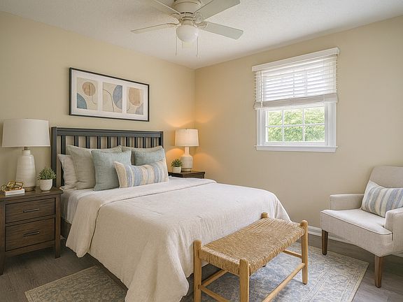 Complete renovation in 2022: New LVP flooring, new cabinets, vanities, stone countertops, plumbing and lighting fixtures, plantation blinds and kitchen appliances. Tiled shower in primary bath and tile surround in hall bath. New HVAC 2023. New roof 2025. Fully fenced back yard-nearly one quarter acre with wooded and grass field beyond.