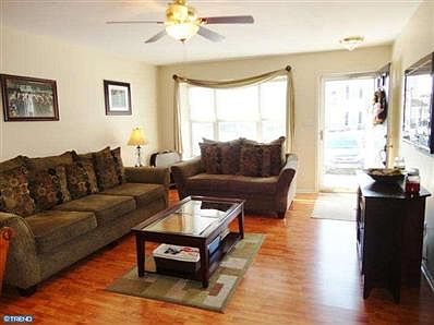 Lovely 2-story townhome in excellent Madison Place location. The Montclair model features 2 bedroom 1.5 baths with an extra Den/Family Room. Foyer entry with storm door and coat closet triple box bay window and ceiling fan/light in Living Room for loads of light connecting into the Dining Room. House features beautiful oak pergo flooring through the entire first floor. Eat-in Kitchen with oak cabinets newer refrigerator (2012) newer super-quiet stainless steel dishwasher gas range plus a pass-through to Den/Family Room. The Family Room has sliding doors to the private patio with a large storage closet. Powder Room has oak vanity mirror and wall storage cabinets. Upstairs has neutral carpets the Master bedroom has a huge walk-in closet ceiling fan. Hall Bath with ceramic tile flooring oak vanity and bathtub. Nice-sized 2nd Bedroom with double window & double closet. 2nd floor Laundry with storage shelf newer gas water heater (2009). Assigned parking space right outside your door. Walking distance to supermarket gym shops. Larchmont Common Areas include tennis courts basketball courts walking paths and optional membership in Larchmont swim club. Move-in condition plus convenience and maintenance-free living!