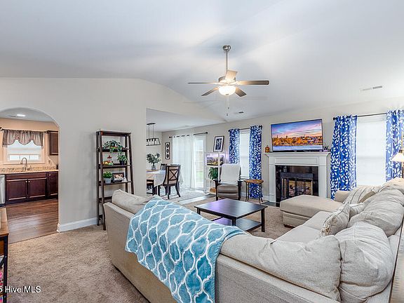 This beautifully maintained 3 bedroom, 2 bath home features a desirable split floor plan and a spacious family room highlighted by vaulted ceilings and a cozy gas log fireplace—perfect for relaxing or entertaining. The kitchen boasts granite countertops, ample cabinetry, and a functional layout ideal for any home chef. Retreat to the oversized master suite complete with a private bath and walk-in closet. Enjoy the convenience of a quick commute to Cherry Point MCAS and all the shopping, dining, and charm of Downtown New Bern