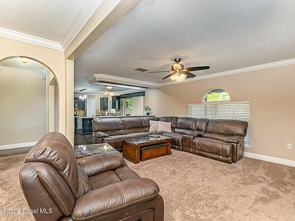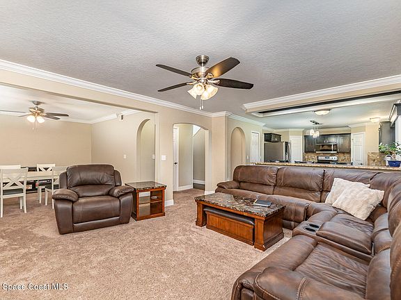 Additional features include crown molding throughout the first floor and foyer, and 5 1/4" baseboards throughout the home, which add a sophisticated touch to every room. The home has also been thoughtfully updated with a new roof (08/23), new microwave (08/23), and a new fridge (08/22) for added peace of mind. The AC was replaced in May 2021, ensuring efficiency and comfort.