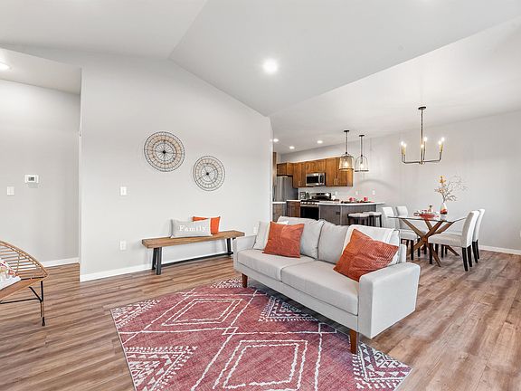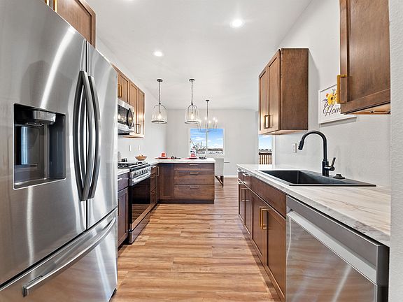 Listed by Emily Costopoulos, Black Pine Real Estate, 858-472-6986. Nestled on the southern end of Belle Fourche, this exquisite new construction offers seamless access to the highway and all the amenities of the Northern Hills. The freshly completed landscaping features lush sod, a state-of-the-art sprinkler system, and a meticulously seeded hillside with a protective blanket. This three-bedroom, two-bathroom home boasts refined accents such as LP Smartside, Medallion soft-close cabinets, and a vaulted living room ceiling. The primary bath is a haven of luxury with an elegant custom glass door, large profile porcelain tile, Schluter corner shelves, and a double vanity. The primary bedroom includes a spacious walk-in closet with a custom-stained barn door. A tall linen cabinet enhances the appeal of the guest bathroom. Both bathrooms are adorned with premium onyx countertops, which offer a lifetime warranty. Enjoy comfortable single-level living with Anderson windows and a modern kitchen featuring under-cabinet lighting, a gas range, and ample storage. This thoughtfully designed home is the ideal sanctuary for you in the Northern Hills.