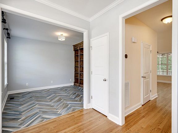 Upon entry, you are greeted by a formal living room/library adorned with custom built-in bookshelves, perfect for quiet reflection or an elegant home office. The formal dining room, accented with classic wainscoting, sets the stage for sophisticated gatherings, while the dramatic two-story family room with a stately fireplace creates a stunning focal point for the home.