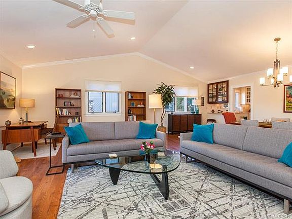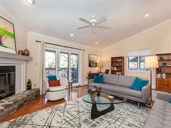 This condo has Blue Ridge Mountain views but is a few minutes drive to Asheville Country Club & downtown. Bright & sunny, has been extensively updated & is move-in ready boasting crown molding, granite & marble counters, custom window shades, gas fireplace & beautiful dark Oak hardwood flooring throughout. One level living with Master on main along with living-dining room, laundry room, kitchen, & attached garage. Large second living area with wet bar, finished exercise-bonus room, storage room plus 2 bedrooms & bath onlower level. Large covered decks on each floor for entertaining & watching the sunset. This maintenance-free, gated, lock-n-leave condo has an active & friendly HOA including a book club & socials. Monthly fees cover city water, extensive mature landscaping care, pest control, road maintenance, snow removal, exterior building maintenance, insurance, roof & crawl space care, clubhouse & pool.