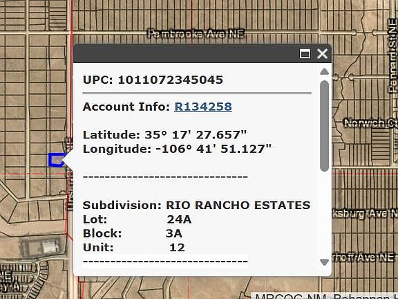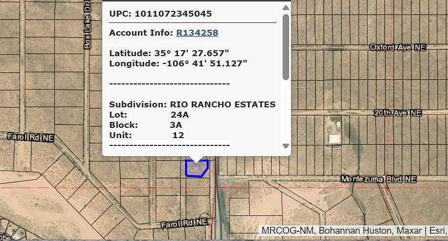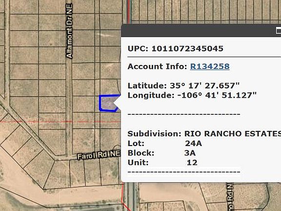Great View! Zoned R1 COZ. Great Location! City water main in the street on Unser and the sewer line is in the street on Farol. Buyers are responsible to confirm all zoning, access and availability of ALL utilities including water.