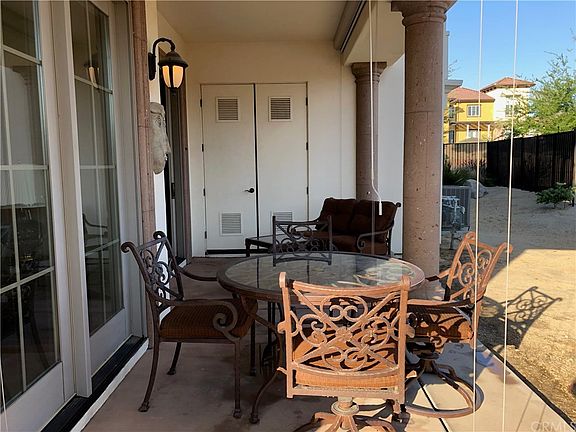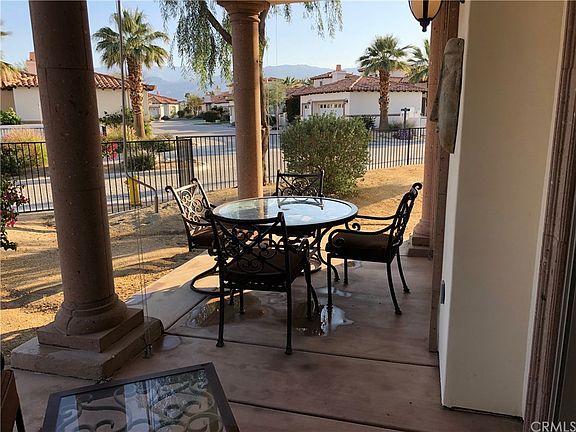 Enjoy resort living at Villa Portofino, the desert's outstanding 55 plus adult community, just unpack your bags, as everything you need is here! This fabulously furnished ground floor unit has 2 bedrooms, 2 baths and office with a wet bar unit. There's a fully equipped kitchen with beautiful maple cabinets, spacious granite countertops, travertine tile flooring and stainless steel appliances. The high coffered ceilings give a feeling of openness and the cozy and warm gas fireplace can be enjoyed on a cold night. There is an abundant amount of storage plus laundry closet which includes washer and gas dryer. The large master bedroom has a view of the mountains plus a large walk-in wardrobe closet with built-in shelving. The master bathroom has a separate tub and shower, plus double vanity sink and separate commode. The guest bathroom has large walk-in shower and granite counter top. The guest bedroom is roomy and has walk-in closet too. Relax and watch the sunset from the covered patio or maybe go to the 30,000 foot clubhouse for happy hour with your friends. There's an abundant amenities to choose from, including community pool, spa, fitness center, billiards, bridge, bocce ball, bistro, movie theater, library just to mention a few. The association dues covers water, trash, cable, internet, landscaping, exterior maintenance window washing, outside pest control and more. Built in 2012, this well kept unit has everything you need and can now be yours!!!