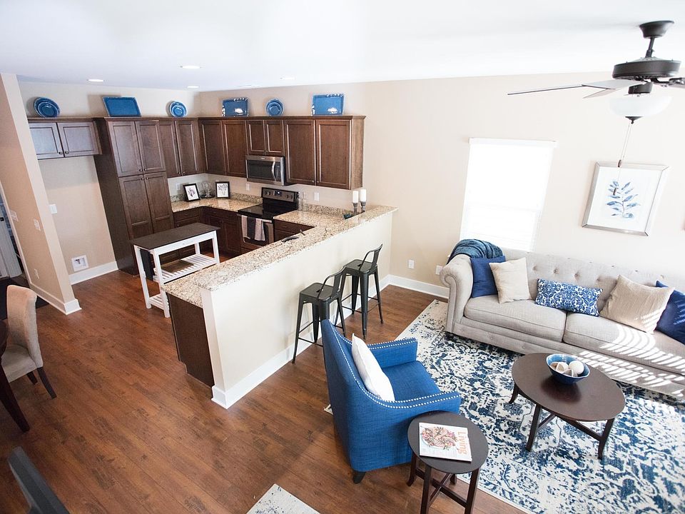 Sullivan Base Plan with added balcony off master bedroom. 9' ceilings, SS appliance inc. frig. Main living LVT. Tile wet areas, carpet in bdrms, blinds throughout home included. Large tile shower in Master.