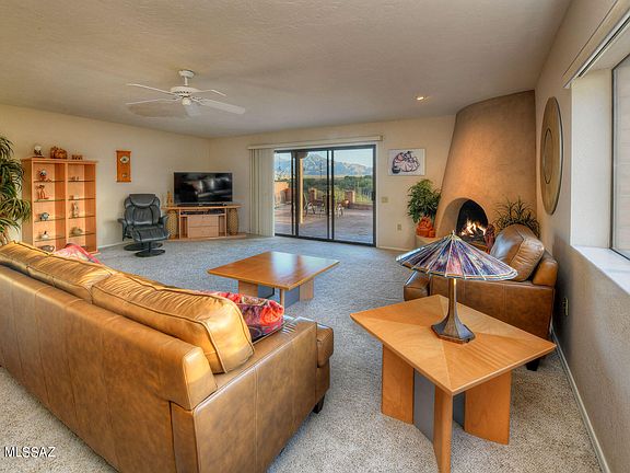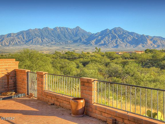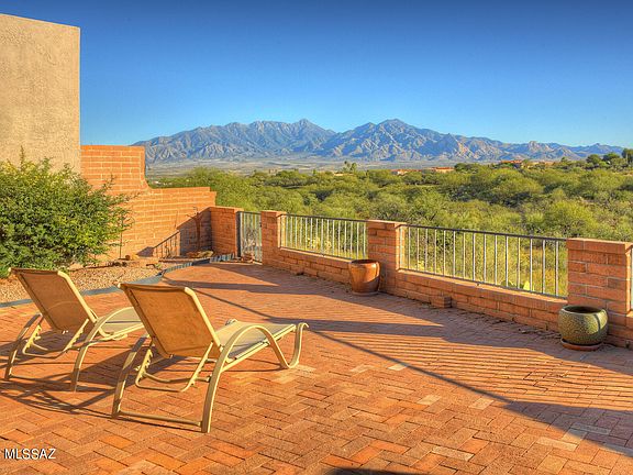 Sitting on a cul de sac overlooking the Santa Rita Mountains, this premium lot will command your attention from the moment you arrive! Backing up to the desert, this home features unparalleled views of the Santa Rita mountains with no rooftops or homes behind you to interfere in the spectacular beauty! An arched entry leads to the charming front courtyard Step inside to the wide open living room where large sliders invite the mountain views inside! A magnificent beehive fireplace anchors and warms the room. A dining area is adjacent and is large enough for family and friends to gather and celebrate while enjoying the views and fire. A long galley kitchen features windows onto the desert and front courtyard, bringing the natural light into the interior. Step out to the patio where the wide open desert and blue skys are the only thing surrounding you while you gaze at those breath taking mountains! The den is conveniently located just off the living area, and can be closed off for privacy. The master bedroom is spacious and features more sliders leading out to those views! If views and privacy are at the top of your list, you have found the perfect home!
