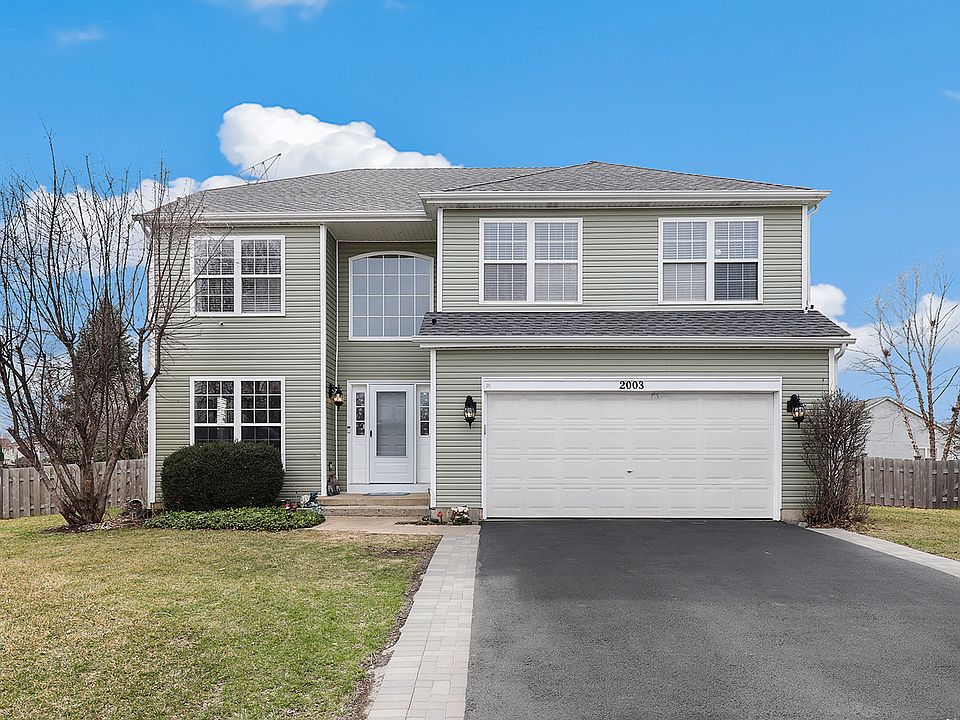 Nestled on a quiet cul-de-sac, this spacious home offers the perfect blend of space and comfort. The large fenced lot is a private oasis, complete with mature trees and a beautiful paver patio- perfect for outdoor entertaining or relaxation. Inside, the two-story foyer fills the home with natural light, creating a warm and inviting ambiance. The main level features a spacious living and dining room combination, while the open-concept kitchen seamlessly flows into the cozy family room, complete with a fireplace-perfect for gatherings. A convenient main-level laundry room adds to the home's functionality. Upstairs, you'll find four bedrooms plus a huge sun-drenched loft with built-in shelving and a charming window seat. The primary suite is a true retreat, boasting two walk-in closets, a dual sink vanity, a soaker tub, a separate shower, and a versatile bonus room-ideal for a home office, nursery, or private sitting area. The space continues in the full finished basement, offering endless possibilities for a rec room, home gym, or additional living area. With its prime location minutes from restaurants, shopping, and I-55 and within Plainfield School District, this home is ready for you to make your own! Don't miss out on this incredible opportunity-schedule your tour today!