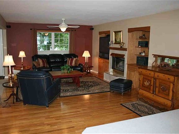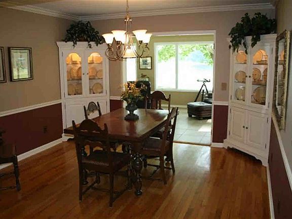 This beautiful lakefront home is located in a secluded, wooded cove with lakefront views from nearly every room! Five bedrooms w/a unique master suite overlooking the lake; living room with fireplace; open kitchen w/stainless appliances; formal dining room; hardwood floors; & a 4 season room - lakeside - with wet bar. The expansive deck beckons you to come, relax, & enjoy life! Enjoy your own wild life preserve w/swans, migratory water fowl, & an occasional bald eagle. Sandbar at end of pier! Htd garage. Ceramic Tile