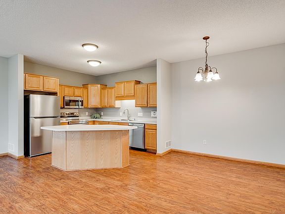 Spacious 2 bedroom, 3 bath townhome, Great location just blocks from downtown Lakeville, shops, restaurants, parks, and more. Recent updates: freshly painted and new carpet throughout, Primary bathroom -new flooring, lights, and mirrors. New water heater, refrigerator, new range(smart things), wifi garage door opener, microwave, washer (3 months), disposal (6 months), dishwasher (6months), A/C (2 1/2years). Open kitchen with center island, 9ft ceilings on the main level, open floor plan, natural light, Primary bath with dual vanity, corner jetted tub and separate shower. Upper-level laundry, storage space in the lower level, and garage, alarm system and more. Clean and move in ready! Must see!