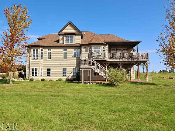 Custom 1.5 story gem in desirable Dover Ridge on 1.85 acre lot. You'll love all the raised ceilings to this home that features no bkyd neighbors! The finished walk-out bsmt features: theater rm, full bar, fam rm w/fireplace, workout rm, partially finished 5th BR, rec rm. The kitchen has all custom pull-out cabinets by Kitchen & Bath Design and the master suite is classy with a sitting room. Enjoy granite c-tops on every bath vanity top, hinged pella windows, wet bar in fam rm up...this home has it all!!